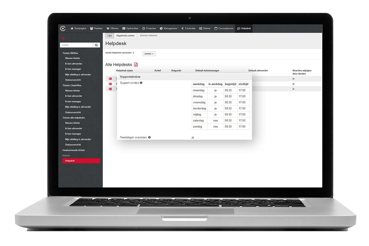 In de Helpdeskmodule zijn alle datumvelden nu voorzien van tijden. In de Helpdesk instellingen zijn nu supportwindows te definiëren en kunnen prioriteiten ook in uren en minuten ingegeven worden. Daarmee wordt het mogelijk om fijnmaziger deadlines te laten berekenen. Daarnaast zijn in de Helpdesk de velden ‘applicatie’ en ‘modules’ hernoemd naar ‘categorie’ en subcategorie’.